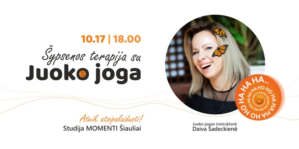 2025-10-17Pramonės g.2C, Šiauliai18:00Šypsenos terapija su JUOKO JOGA2025-10-17Pramonės g.2C, Šiauliai18:00Šypsenos terapija su JUOKO JOGA